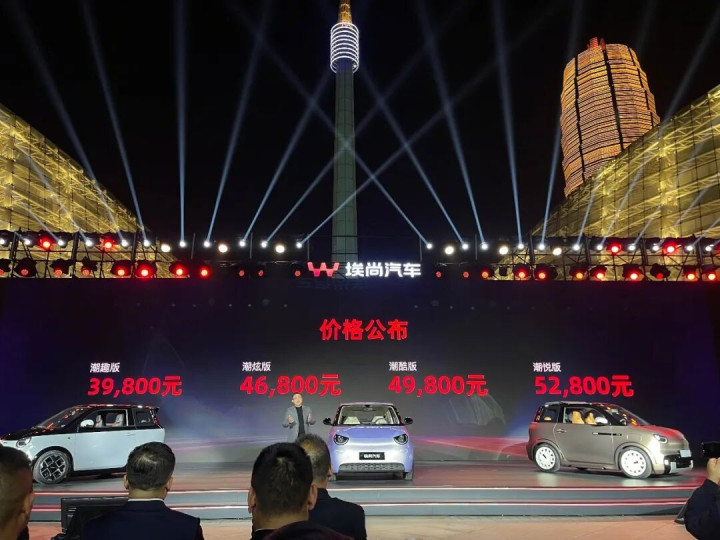柳州五菱乘用车品牌“埃尚”首款车型埃尚A100C上市开售,4款车型的官方指导价为3.98-5.28万元。新车的外观造型、车身尺寸与长安汽车旗下糯玉米十分雷同,采用3门4座车身结构,全系标配泊车雷达,中高配车型有倒车影像,顶配车型还有前后摄像头。动力使用单电机前驱形式,全系标配17.65度的磷酸铁锂电池,CLTC纯电续航220km。在活动现场,官方还透露后续将推出iSee猎装概念车。